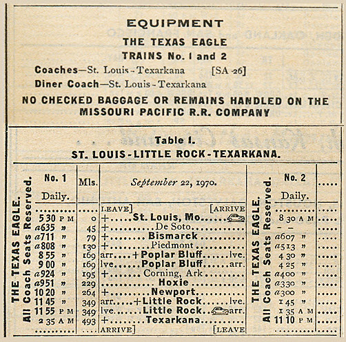 From Wikipedia: The Missouri-Pacific Railroad ended service on its crack Texas Eagle on April 30, 1971, one day before Amtrak took over passenger services. In
