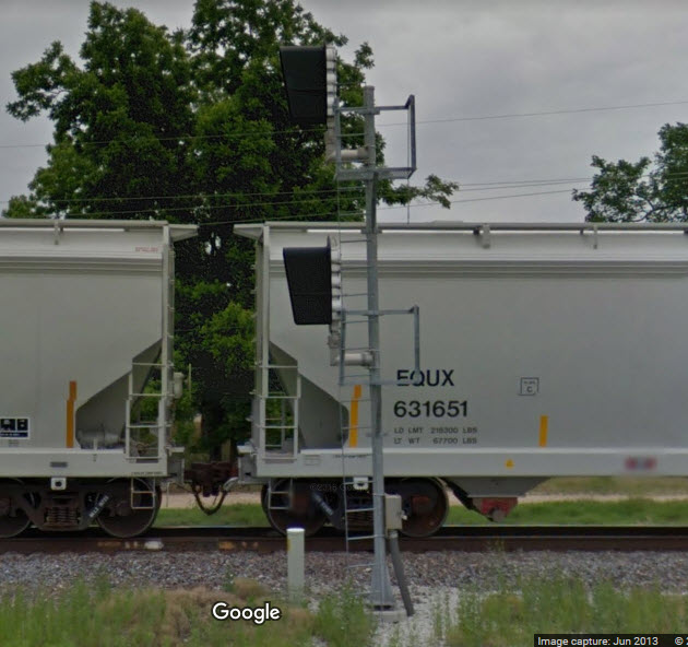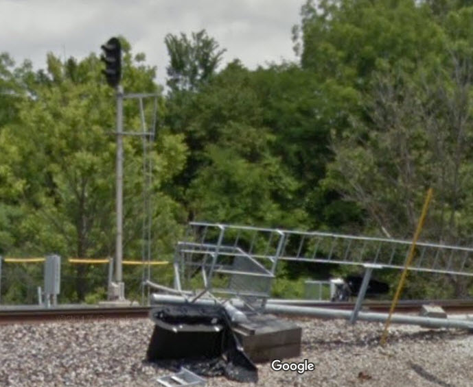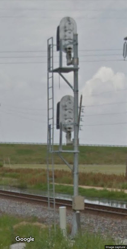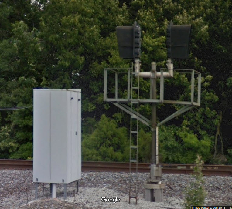 Being that I am relying on Google Streetview for my pictures, the freight train blocked my view of these signals. Anyone have better shots?