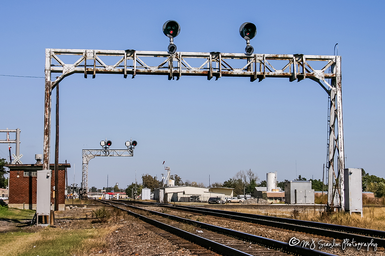 The diamond once hosted trains of the Missouri Pacific and Frisco Railroads. Now it sees Union Pacific and BNSF trains, as well as Amtrak's Texas Eagle.