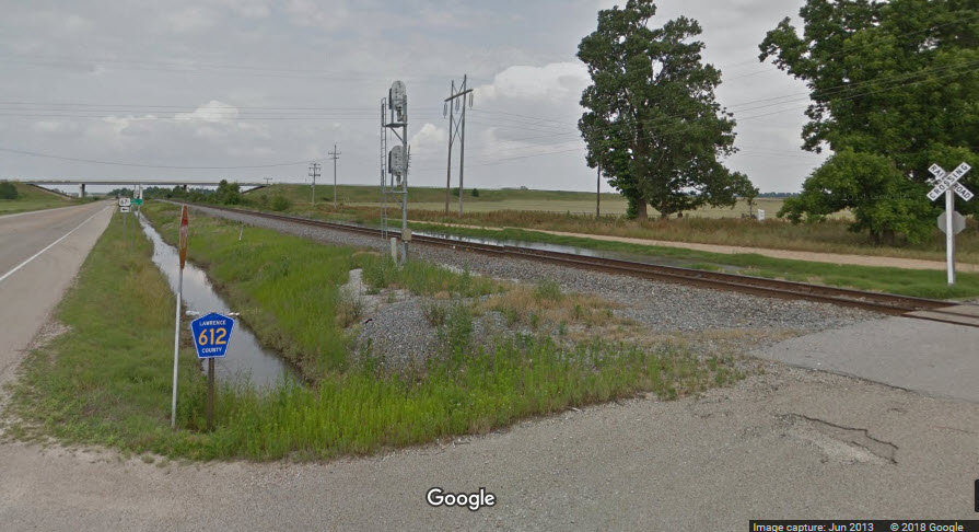 US 63/412 follows the Thayer South Sub west out of Hoxie on it's way to Imboden, but roads only follow the rails for about 7.4 miles before trains head north, just
