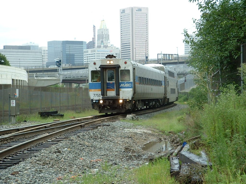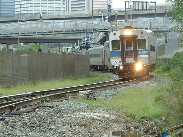 Riverside as a mainline freight heads towards the Howard St Tunnel to head