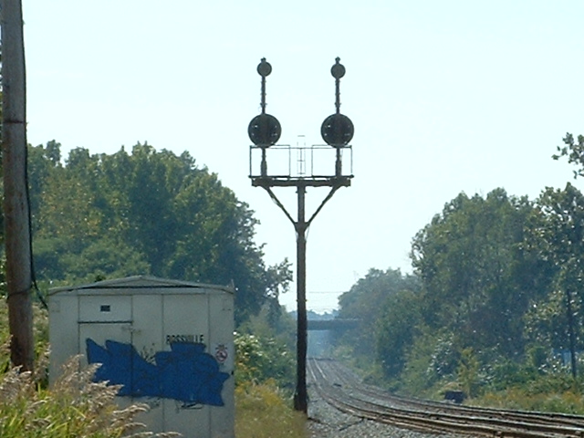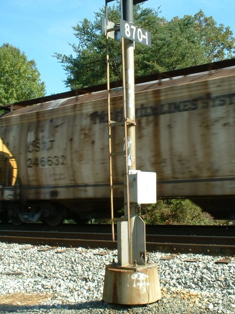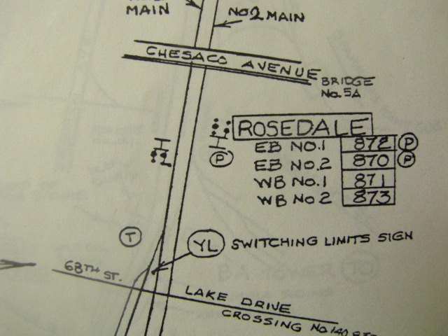 This set of signals is on the B&O maps as ROSEDALE. In looking at the map, these signals were apparently originally bracket mounted. The west track is main #1, the east track is main #2. EB #1 is signal 872. EB #2 is 870.... WB #1 is 871, and WB #2 is 873. The next set of signals north (east in B&O parlance) of here is ROSSVILLE. The next set of signals south (west) of here is on the other side of Bayview Yard, at BA TOWER, right off of Pulaski Hwy.