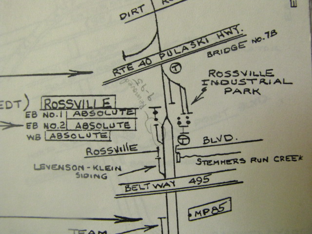 On this map, you will find the two main yards of Baltimore for both CSX and Norfolk Southern (Bayview and Bayview), the shared NEC line with Amtrak and NS, the MARC Commuter station at Martins, the old Pennsy depot at Stemmers Run, and a detail of the Highlandtown area (not that there's a whole lot there, it's mostly for historical reference.
