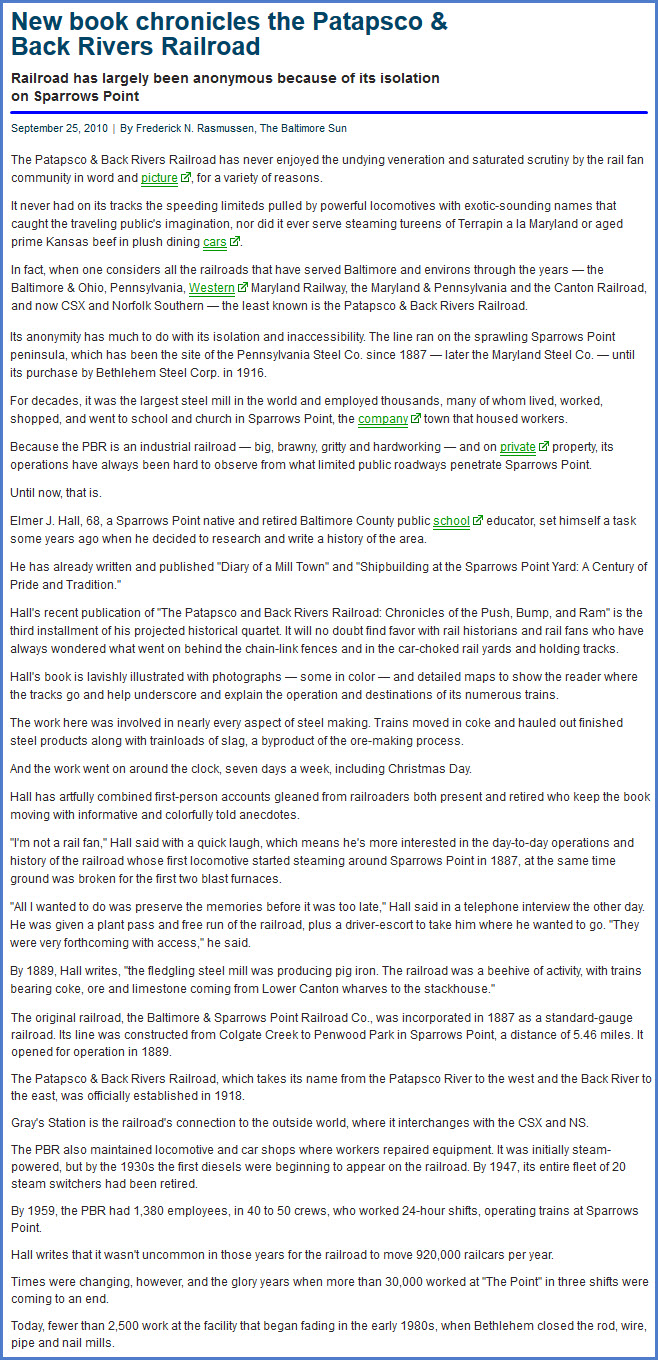 The Patapsco & Back Rivers RR (1918-2012) was one of many Bethlehem Steel railroads, including the Cambria & Indiana (1904-1995), the South Buffalo Rwy, and