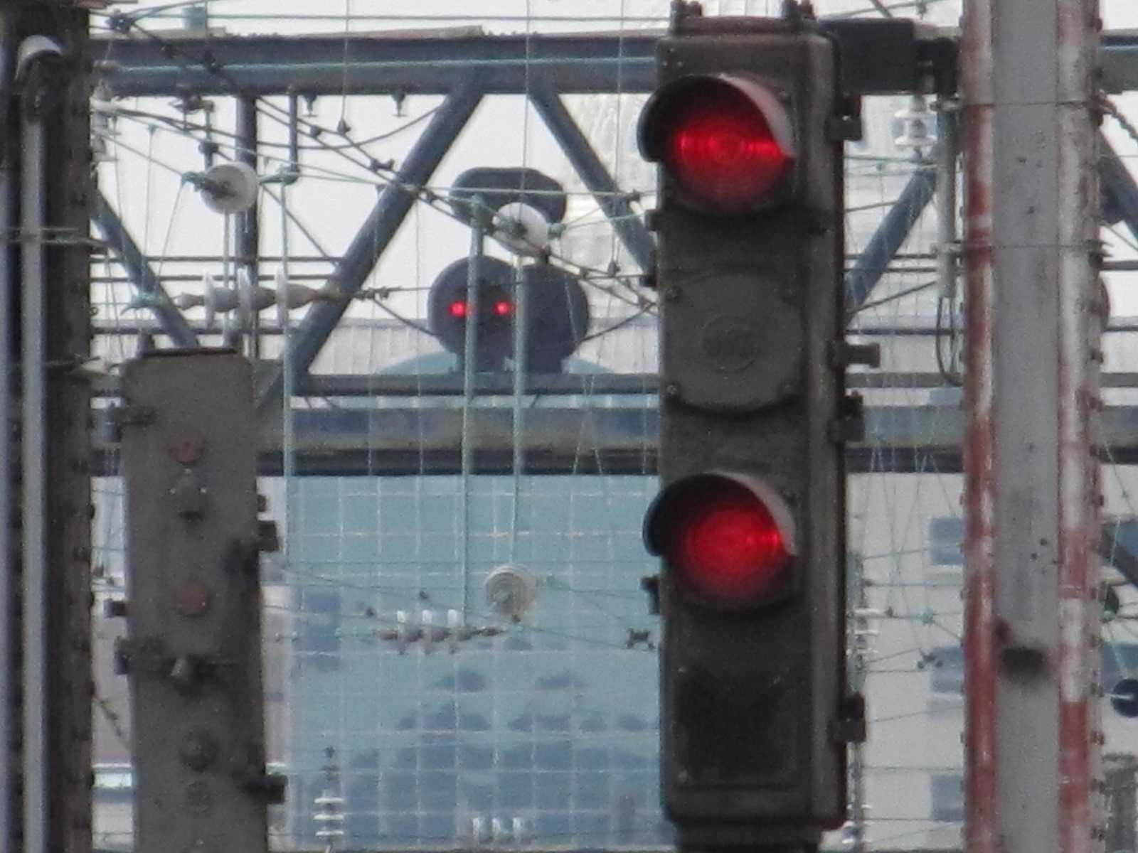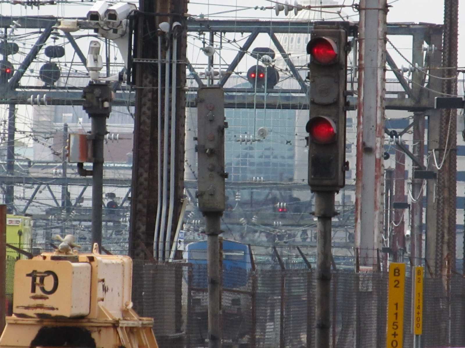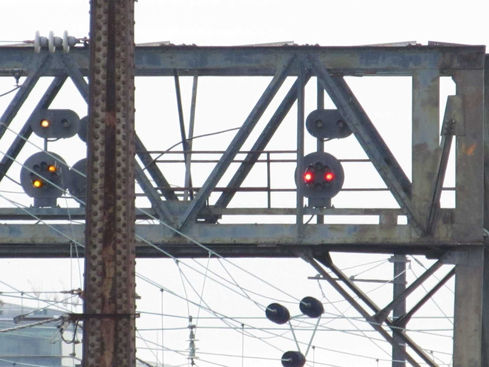 see the three signal bridges: H, J, and K, with the outbound signals facing us.