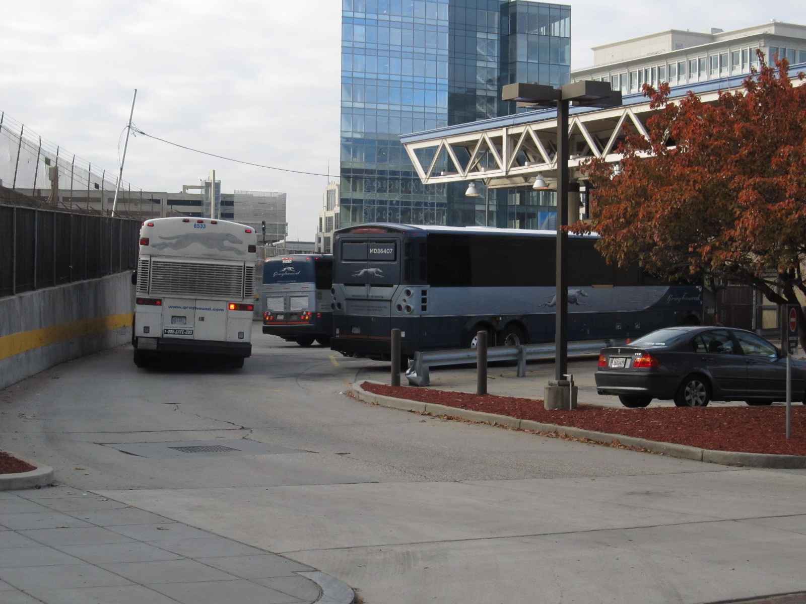 Greyhound now comes into the parking complex as do most other regional bus lines.
