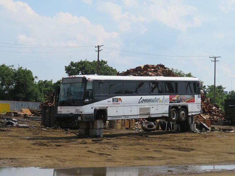2002 MCI D4500 (Diesel) #128-C in the scrap yard, August 9th, 2018, photo by MJofLakeland1
