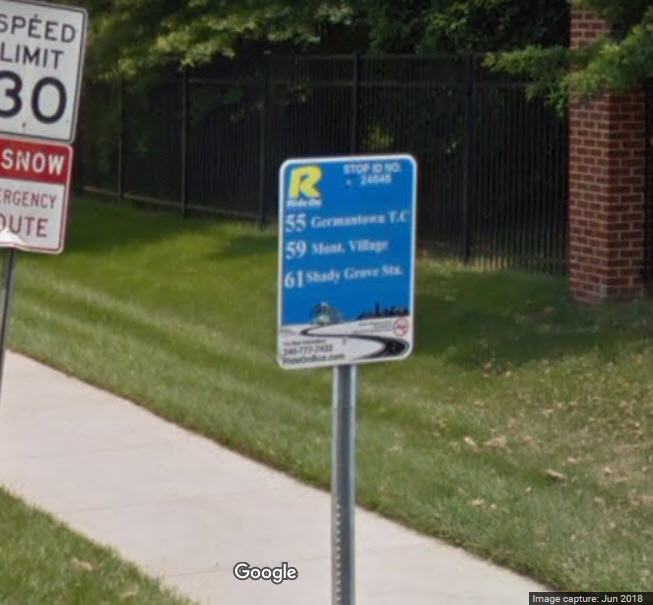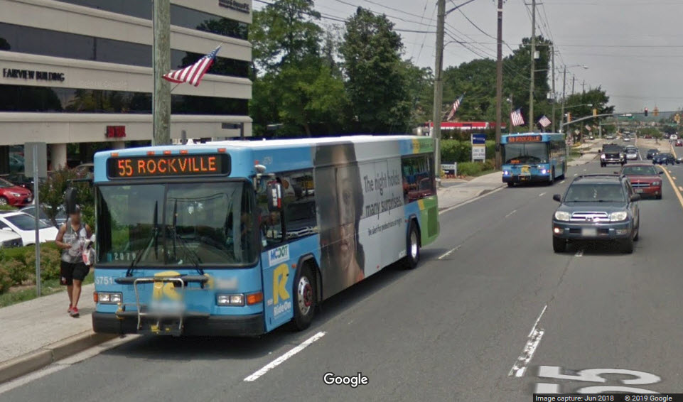 of Democracy Boulevard and Westlake Drive, Bethesda, MD. Metrobus
