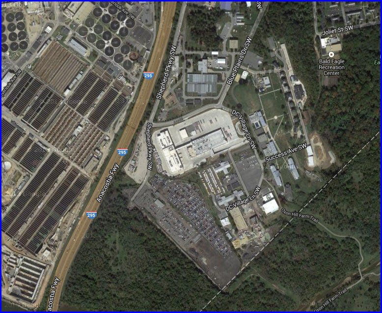 past the Naval Research Labs, it was easy to find with the sewage treatment