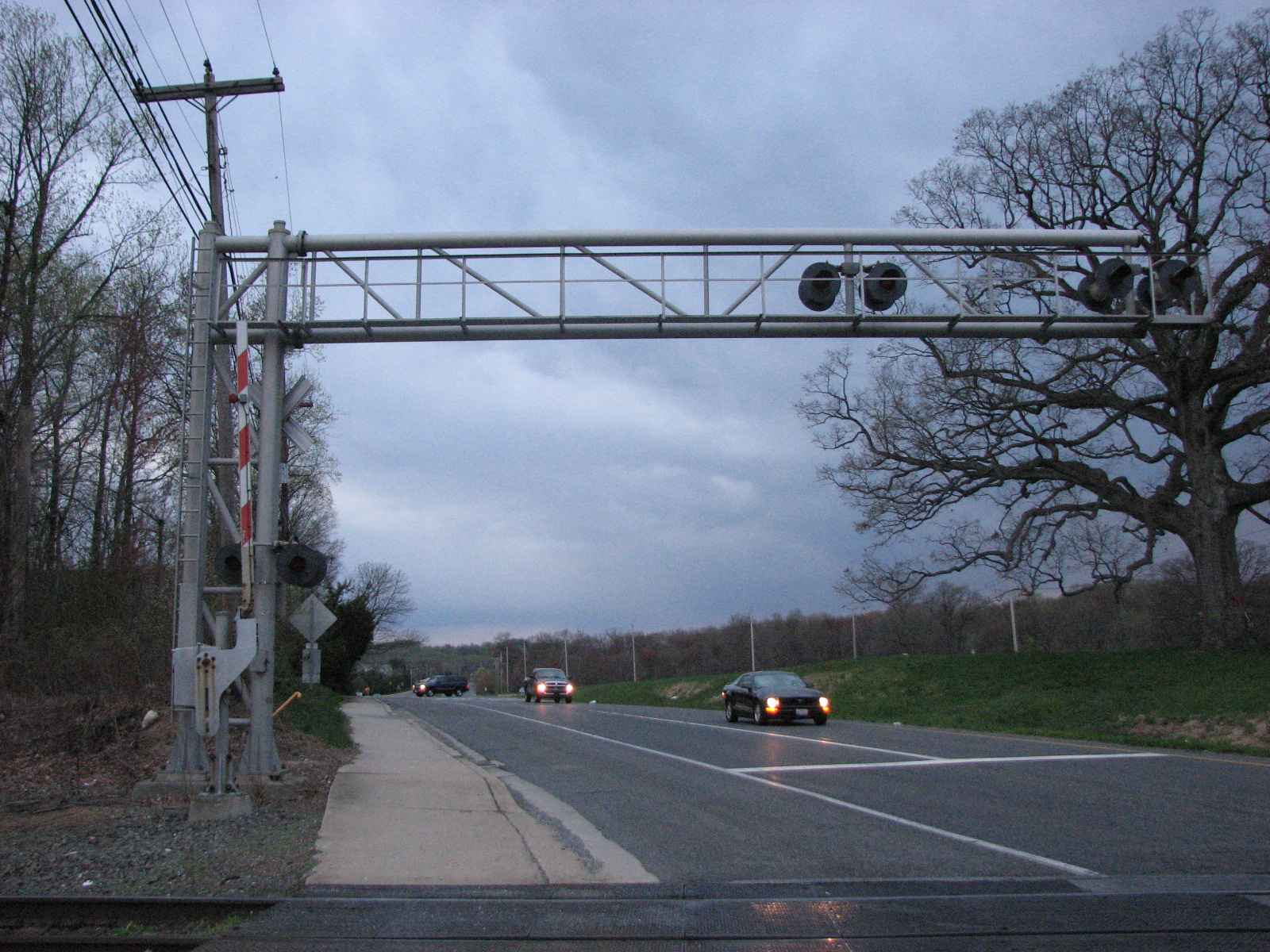 The grade crossing is also unusual for Delaware because there are pedestrian crossing gates on both sides of the road and tracks.