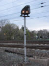 This is an approach signal WAS for the interchange with the Amtrak mainline. The grade crossing also has pedestrian crossing gates. Most pedestal signals are