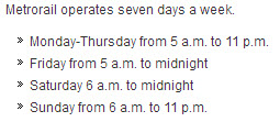 a break on the weekends, huh?).... end Metrorail info.