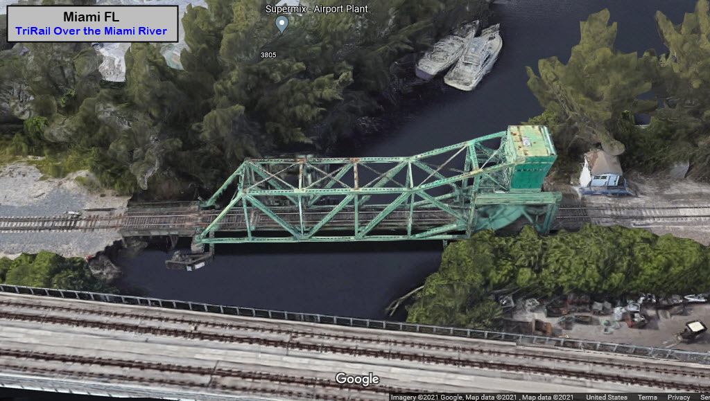 taking off to the right, and the Miami Metro going over the TriRail line.