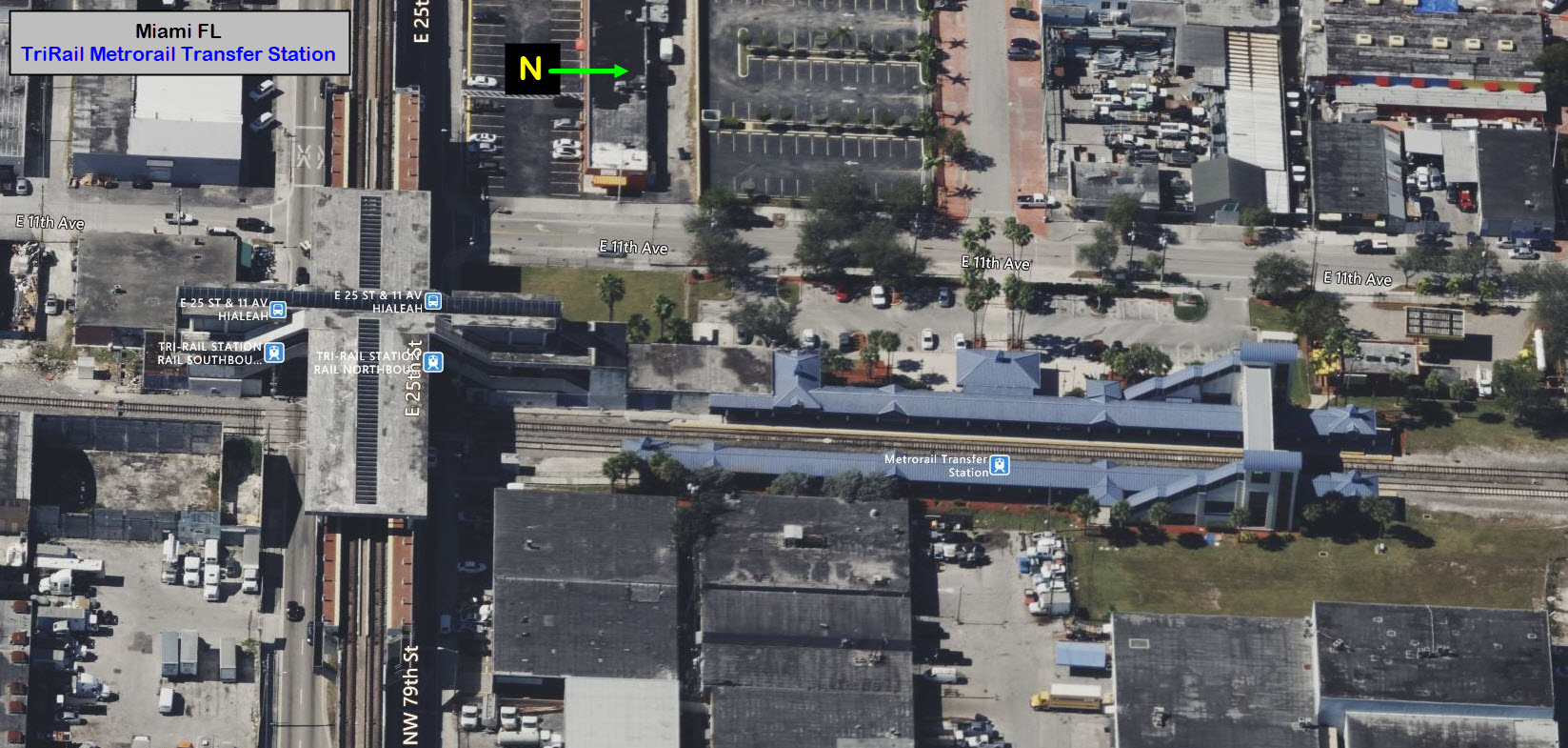 The Miami Metro is overhead, and the TriRail / Metrorail Transfer station is behind us.