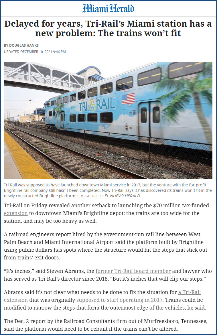 by Tri-Rail for service at West Palm Beach, Deerfield Beach, Fort Lauderdale,