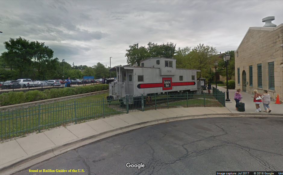 There is a static display of a CB&Q Caboose at the station.