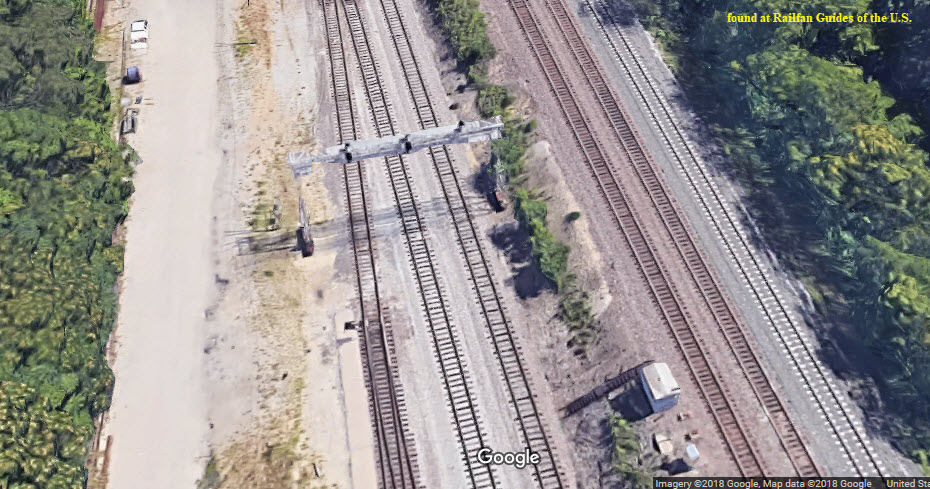 bridge spanning the tracks, and a single searchlight mast mounted for the northernmost track. The new set of colorlight signals are closer to McClure, but still