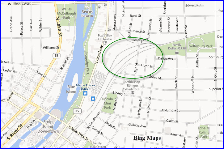 From here, the railroad goes under the roads at High St, Wood St, Ohio St, and Farnsworth Ave...... etc. We have signals at Farnsworth.