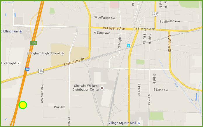 Effingham IL is at the crossing point of highways I-57 and