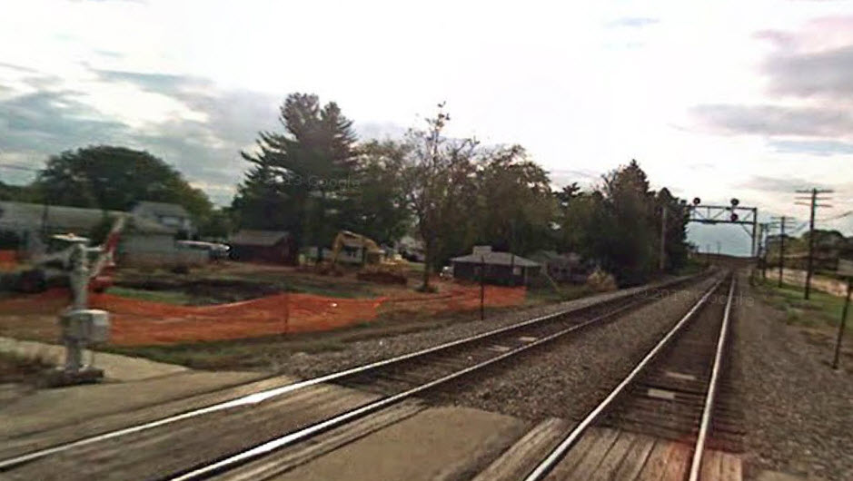 From the N 9th St grade crossing. Notice the pedestrian crossing gate! From Google street view.