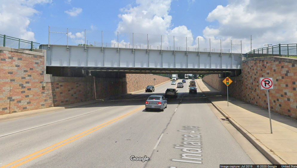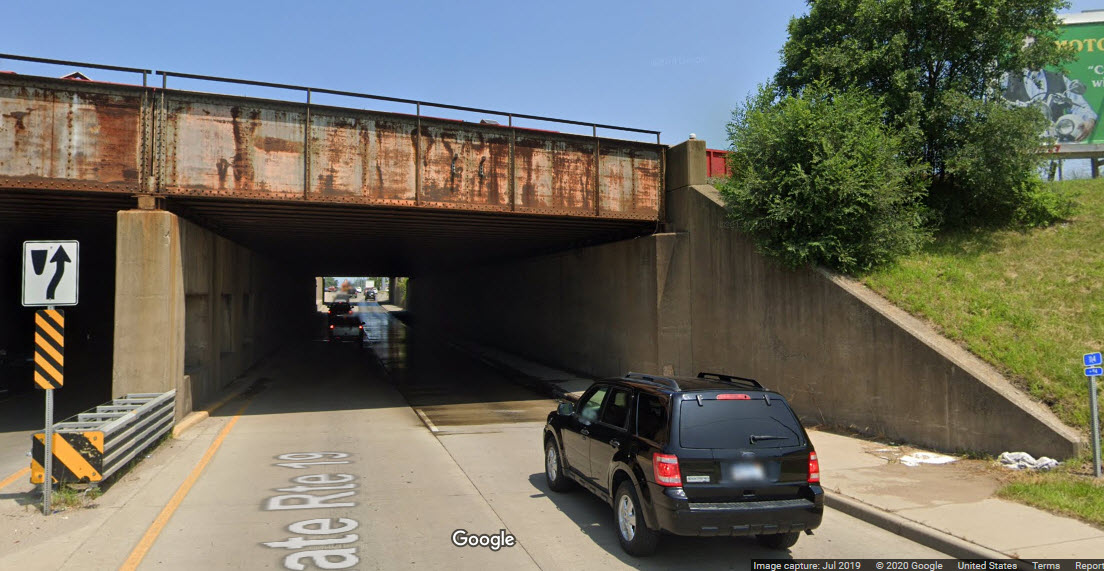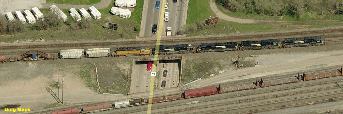 A SB/EB freight at McDonald St.... gotta love this photo service from Bing... sometimes...