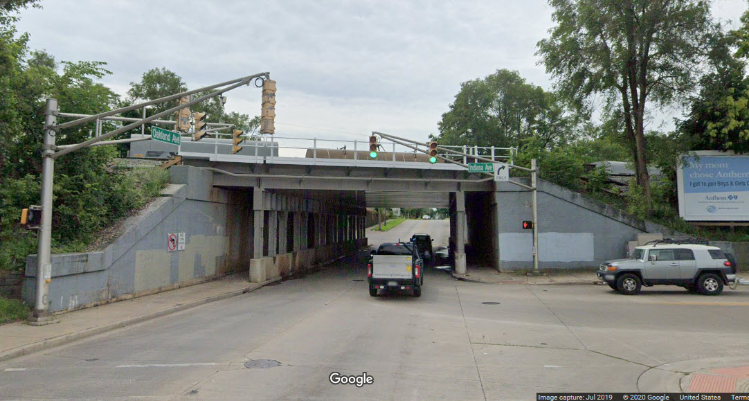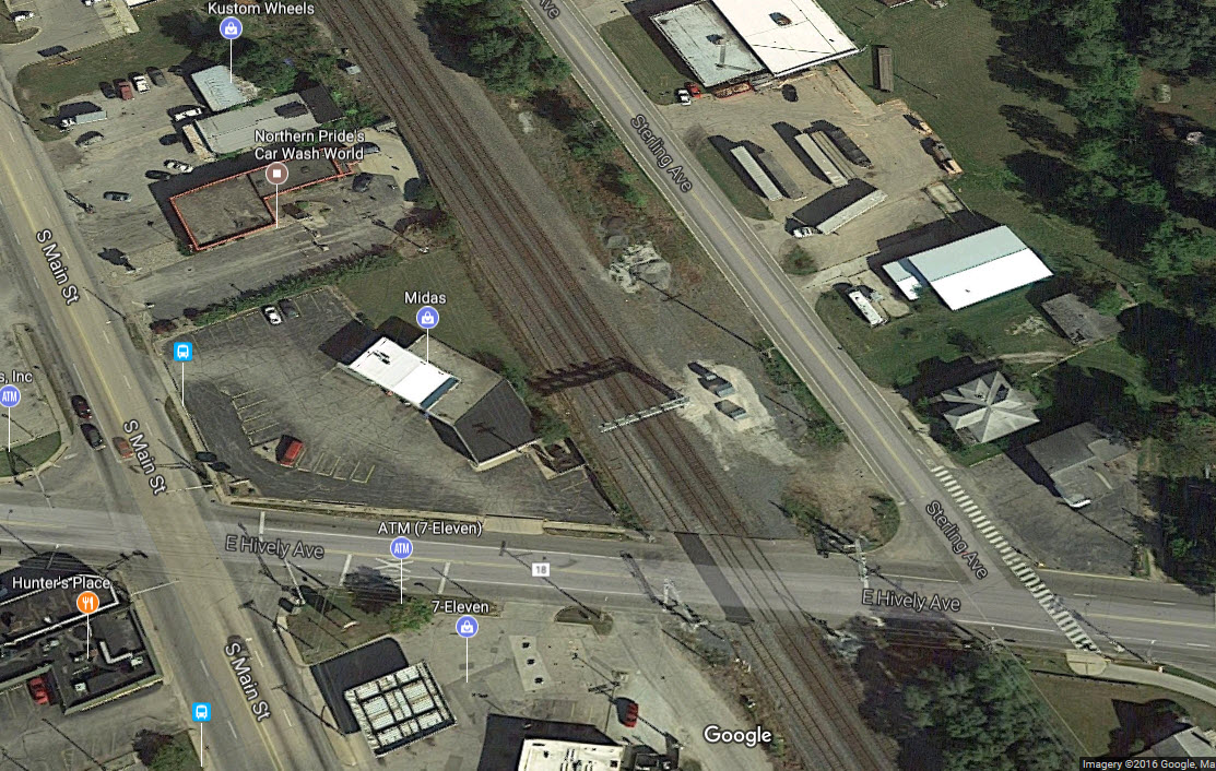 A signal bridge on the south side of town behind an Advance Auto, just above E Hively