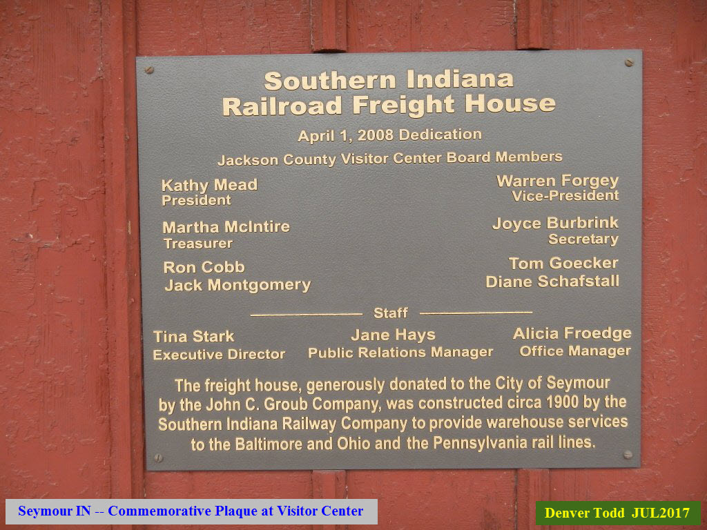 architecture. Located on approximately an acre and adjacent to downtown Seymour on land in the original plat, the freight house was placed on the National