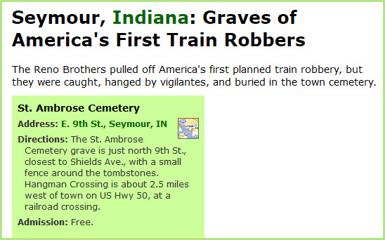 between $12,000 and $18,000. The secret of the gang's ill-gotten gains in multiple robberies remains a mystery. The Reno brothers died in 1868 after they were