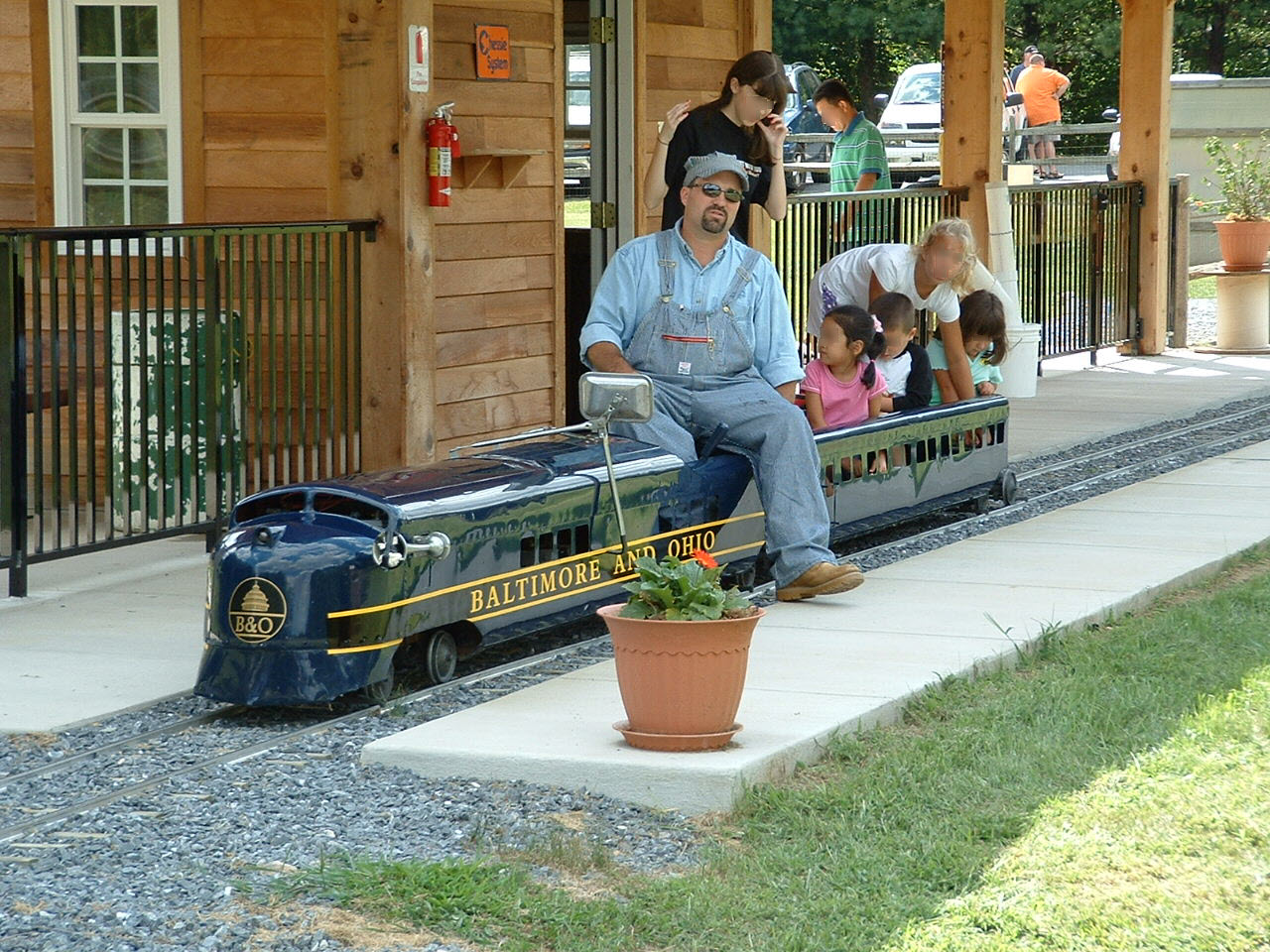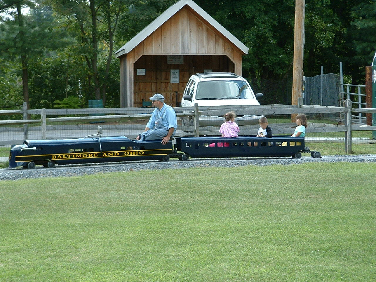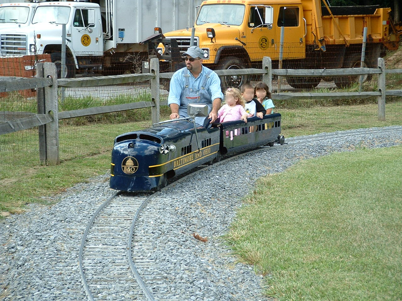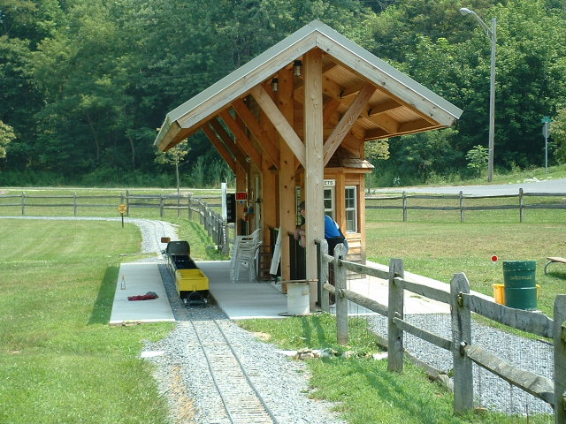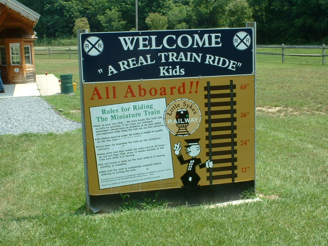The "Sykesville Train" was purchased by a local resident and "donated" to the city of Sykesville for kids to enjoy. The train was supposedly purchased from a mall in Harrisburg and 1997 or so. I believe the train is 12" gauge, but I have to check on this, as my memory suffers from CRS. Please don't whine when you get there and they tell you only kids can ride it.