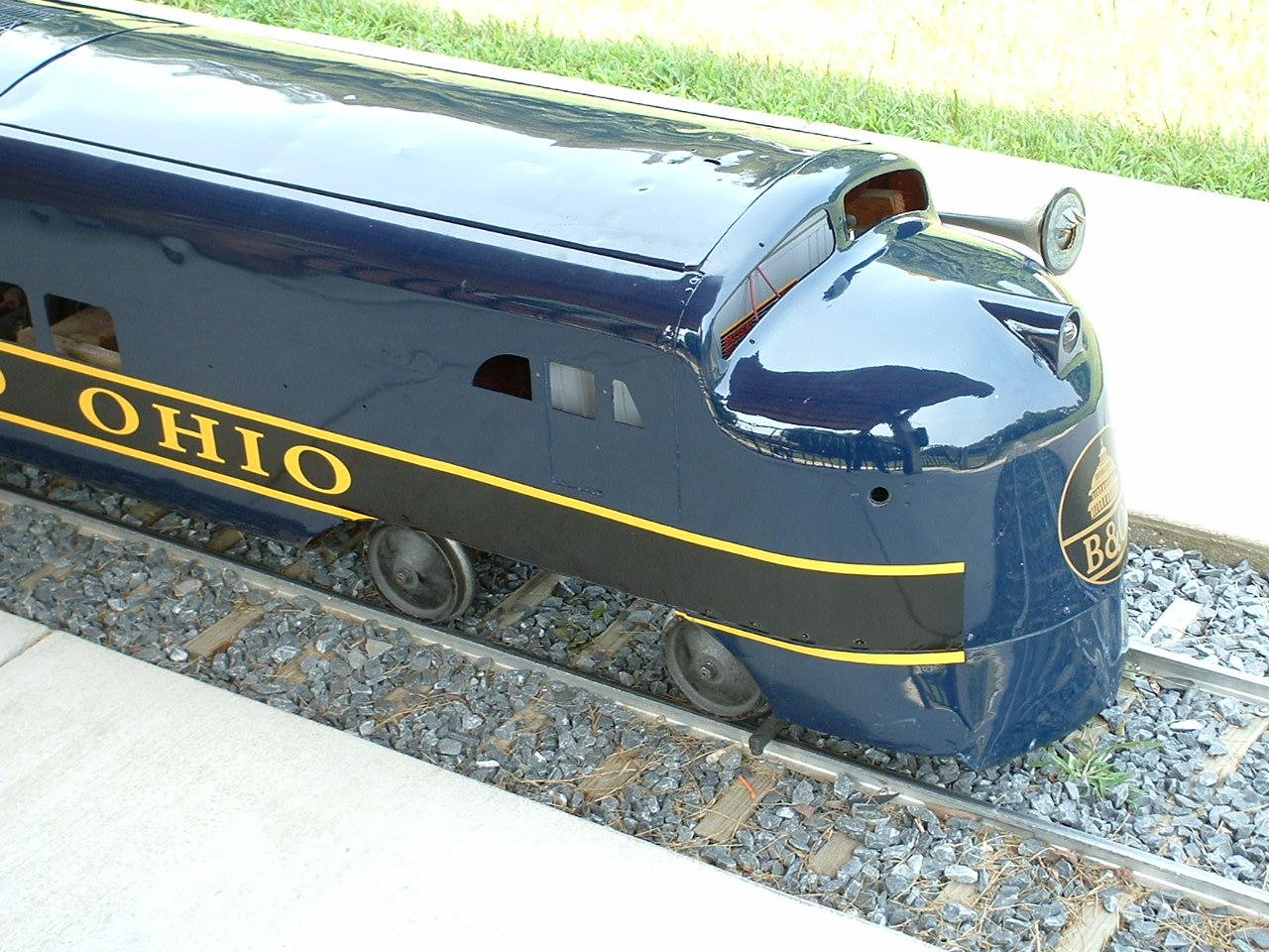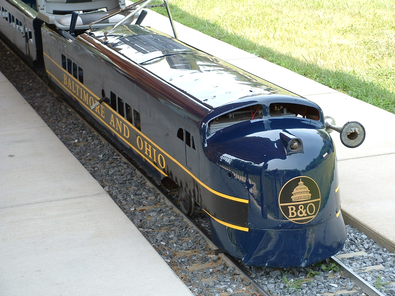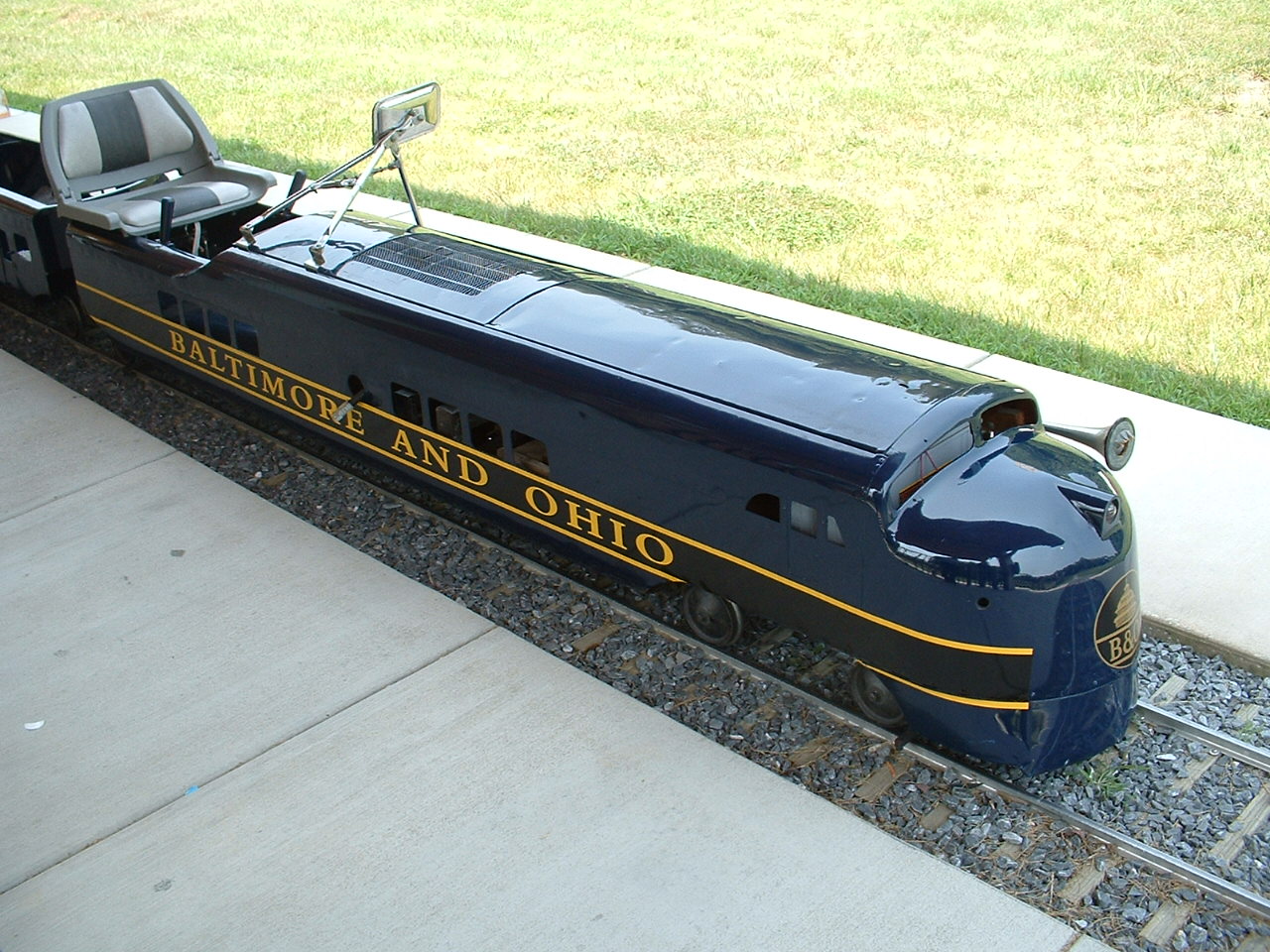 The "Sykesville Train" was purchased by a local resident and "donated" to the city of Sykesville for kids to enjoy. The train was supposedly purchased from a mall in Harrisburg and 1997 or so. I believe the train is 12" gauge, but I have to check on this, as my memory suffers from CRS. Please don't whine when you get there and they tell you only kids can ride it.