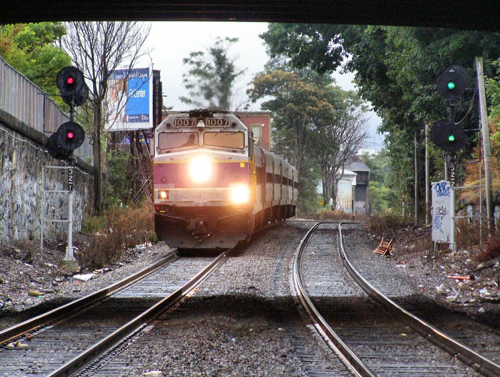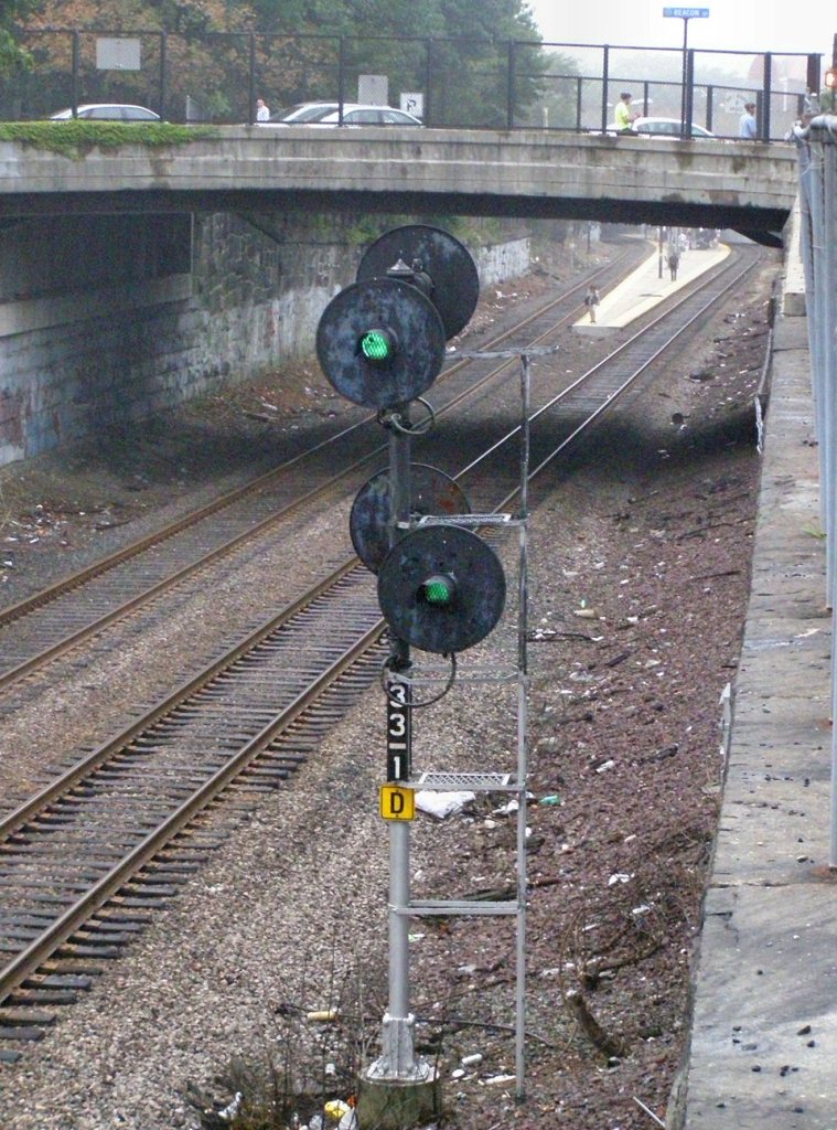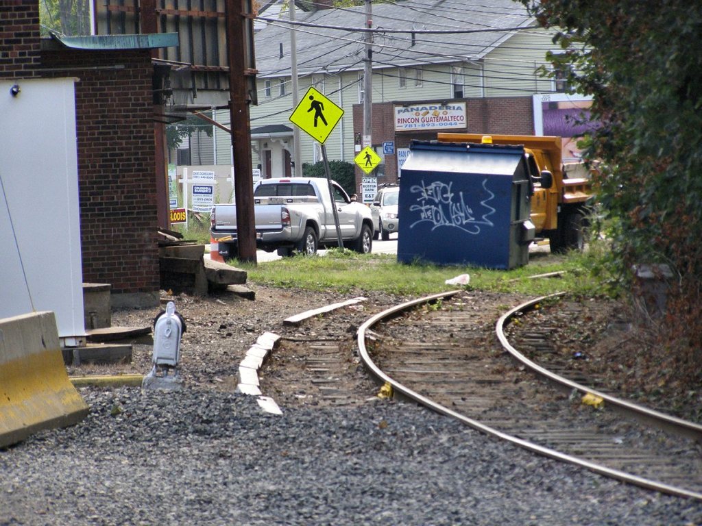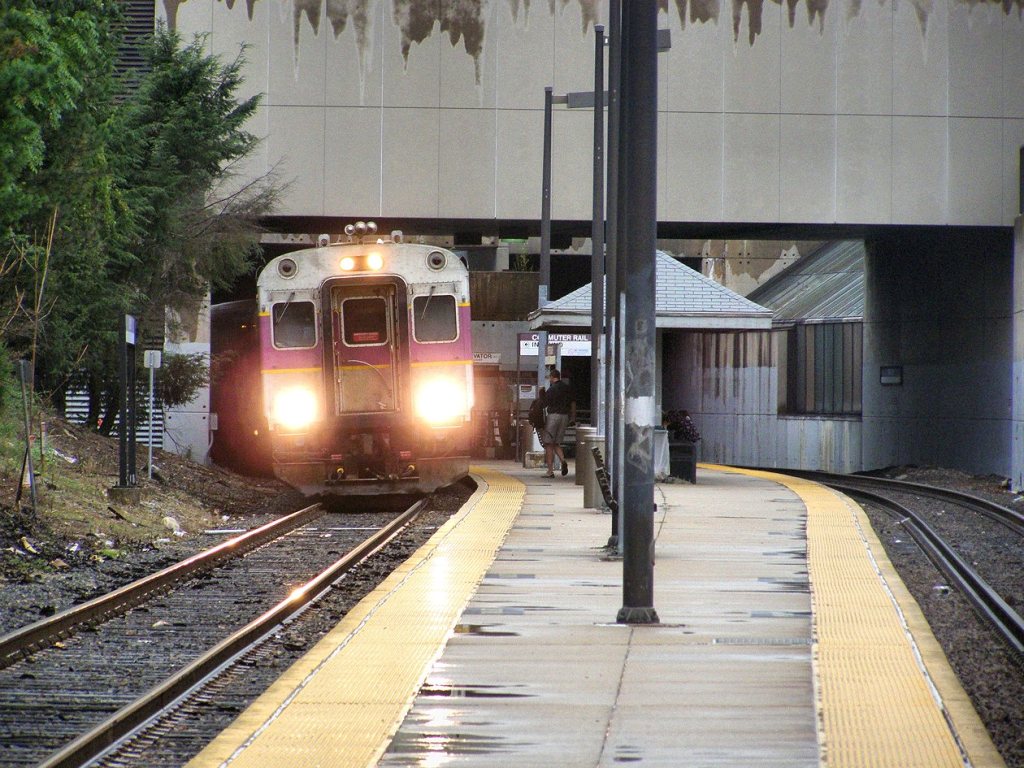 The right track (inbound to Boston) has the high