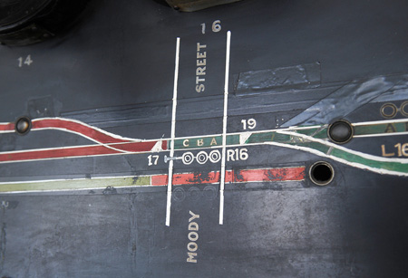 The Arsenal Branch track and dwarf signal locations.