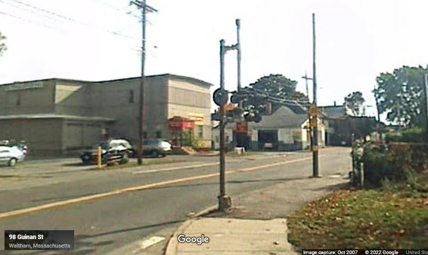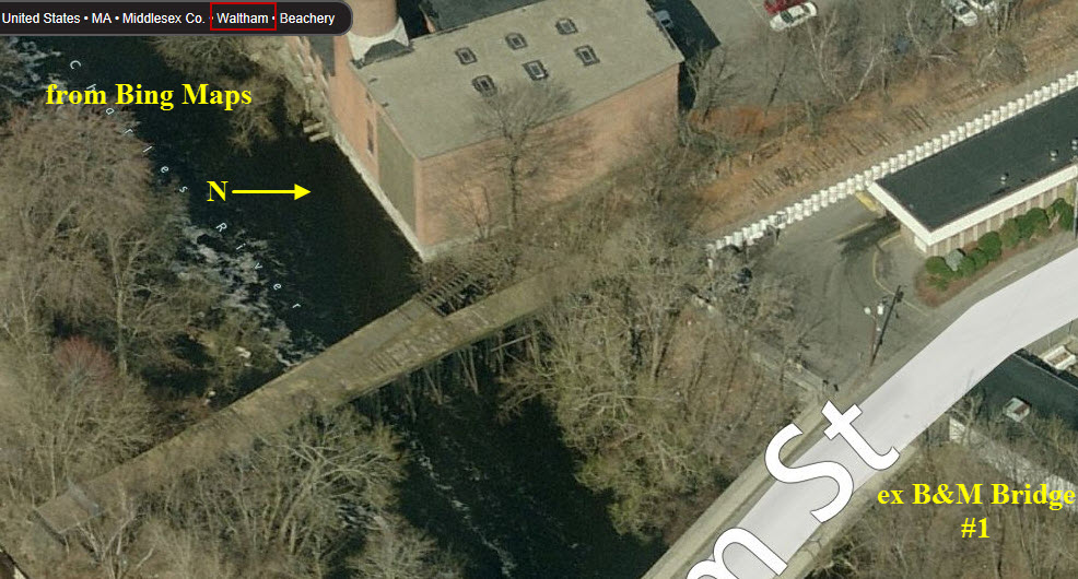 On the south side of the tracks is the former B&M Waltham Tower,