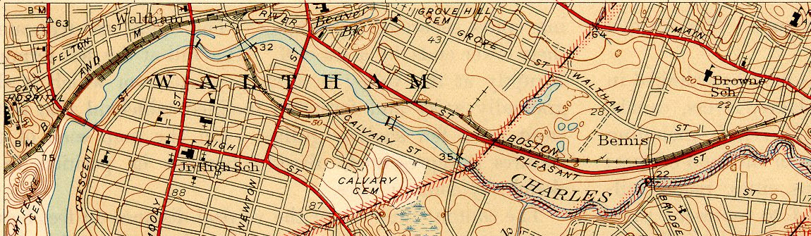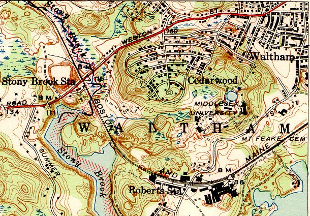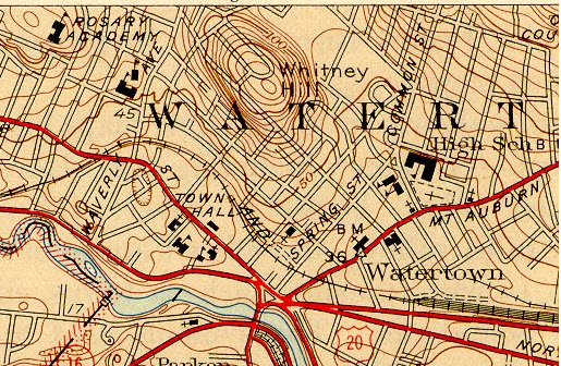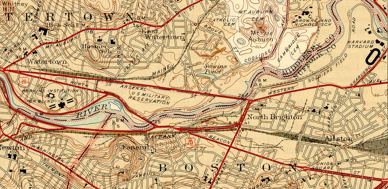 In 1946, Waltham end on top, Watertown above, and the Arsenal below.