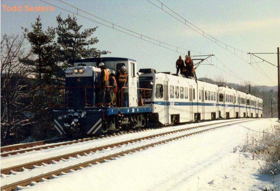 Grainy scans of prints of a test train prior to the opening of the HV extension around 1996