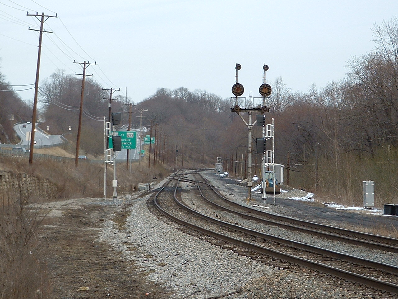 West of Brunswick, off 340 where Knoxville Rd splits off, are a couple of "new" signals, which replaced the B&O CPL's in the 2005 timeframe.  This is a set of WB signals, with the two right photos looking back east towards Brunswick - you can see where the track splits, and everything in the middle used to be yard.  These pix are from 2008.