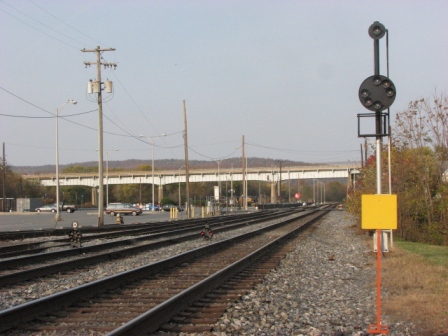 Coming up from the south west, as in I81, I usually take exit 307 at Stevensville (you could also go up to exit 317 at Winchester, and take VA7 east to get to US340, but I found it usually takes a little longer than getting off at exit 307).  My daughter used to go to school at Virginia Tech, and getting off here made the trip to Baltimore much quicker than going across 66 through DC, or up to Hagerstown to catch 70.  At this exit are a bunch of good places to get gas and catch something to eat.  Anyways, head east on VA277, which is Fairfax Pike.  In about 4 miles, you will hit the traffic light junction of 277, US340, and US522 (take a left and you'll wind up at the East Broad Top!  :-).  Go straight through the intersection, and you are now on US340.  Stay on this as you pass through the small towns of Boyce, Berryville, Rippon, and then bypass Charlestown.  You may also be able to catch some Norfolk Southern action as you toot along, but in the 20 some years I've been using this route, I've never caught anything.  In Berryville, there is a nice set of N&W CPL signals if you hang a right on Main St and go to the crossing.  About ten years ago, they built a bypass around Charlestown, which makes the trip go a little quicker, but the downtown area has some nice shops in it if you have your wife or girlfriend with you.  Just follow the signs for 340, and you can't go wrong.  Where 340 and WV9 meet up with the 340 heading to Harpers Ferry, there is a standard cloverleaf interchange, just watch the signs.  From there it's about 5 miles to Harpers Ferry, and another 7 to Brunswick.  Coming into HF, you'll be going down a steep grade, and at the bottom, it curves off to the left, crossing the Shenandoah, and then follows the Potomac for a mile or so before crossing it into Maryland.  State lines are usually in the middle of rivers, but every map I look at shows me that the state line between WV and MD is the shore on the WV side!  After crossing the Potomac in the second of two long bridges, you'll go about a mile and a half before coming to the exit for Knoxville Rd.  Follow this into Brunswick, and again, sometimes you might catch a WB freight waiting for a signal.