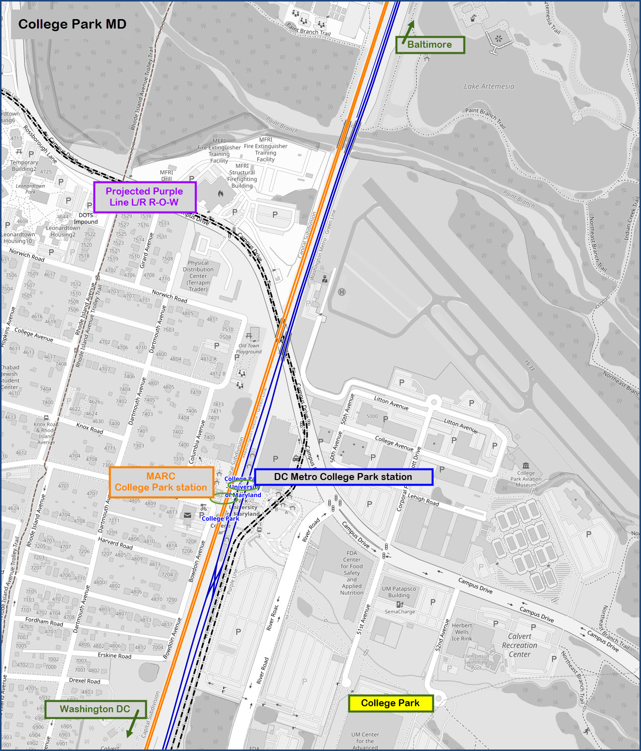 College Park is served by both a MARC and DC Metro station, and are the