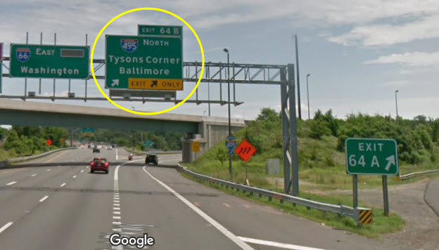 If you are coming down I-95 from (say) Baltimore, take the I-95 exit onto