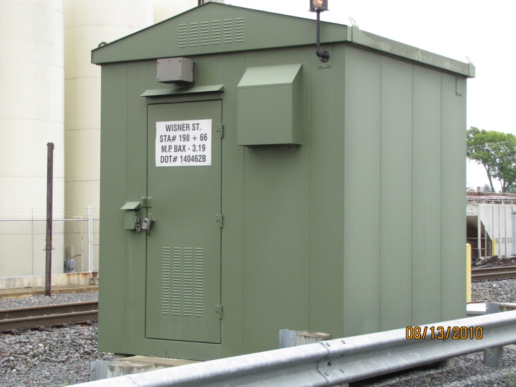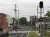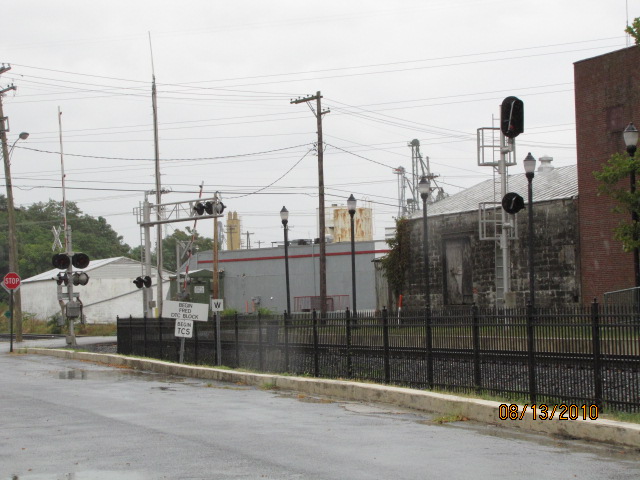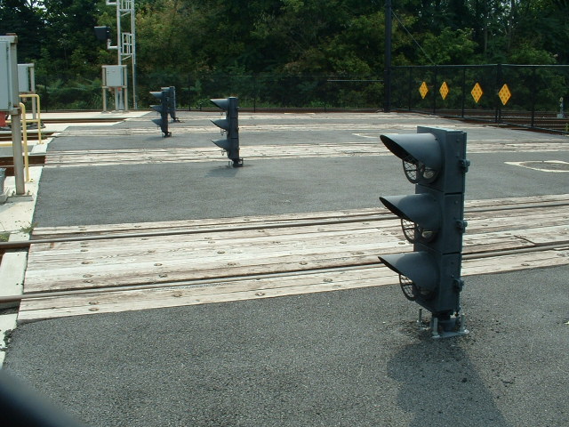 Grade crossing adjacent to the station on Wisner.