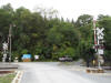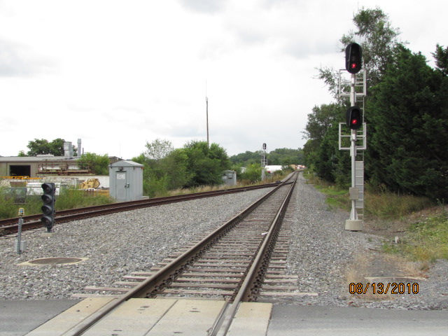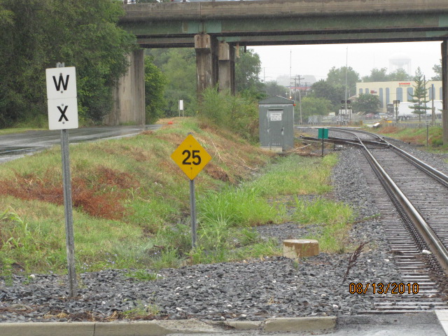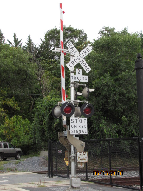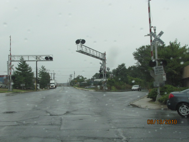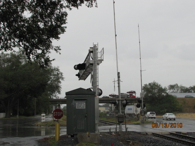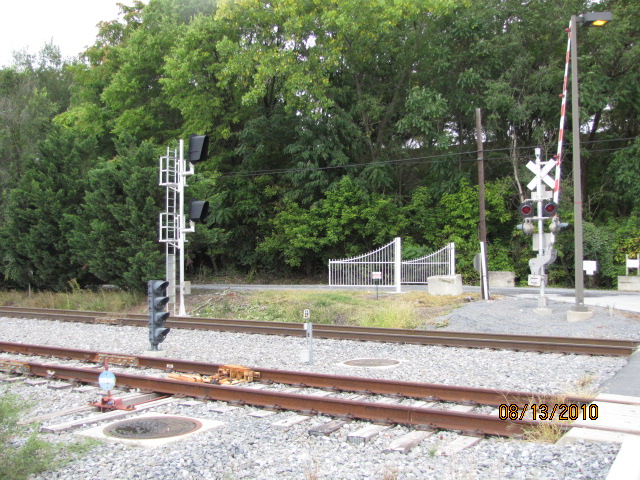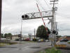 The grade crossing and signs on the north side of the yard.