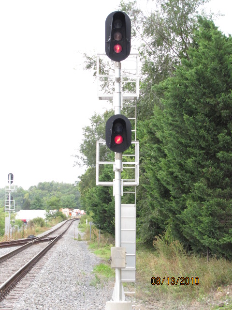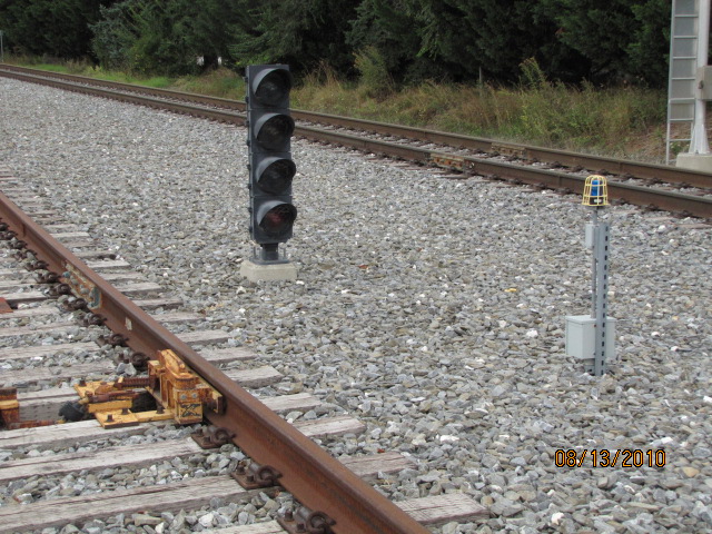 The high color light signals along the spur are from Safetran.