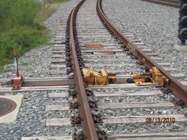 A derail at the south end of the yard, to prevent trains from