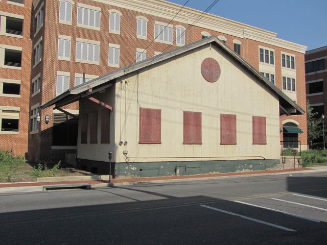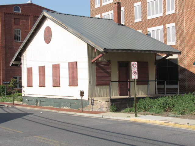 Not sure, but this building sure looks like a railroad leftover. Frederick used to have a plethora of them 30 year ago! Mr. Benjamin writes and tells me that the photo is of a truncated B&O Freight station lopped off when the rail yard was turned into parking lots and an Art Center in the 1990's.