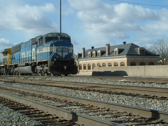 Hagerstown is at the crossroads of what used to be the Western Maryland, the Pennsy, the Baltimore and Ohio, and the Norfolk and Western. It's now served by CSX (B&O and WM) and the NS (N&W and PRR). Thru freights on both roads share the ROW going past the Police Station in the downtown area.