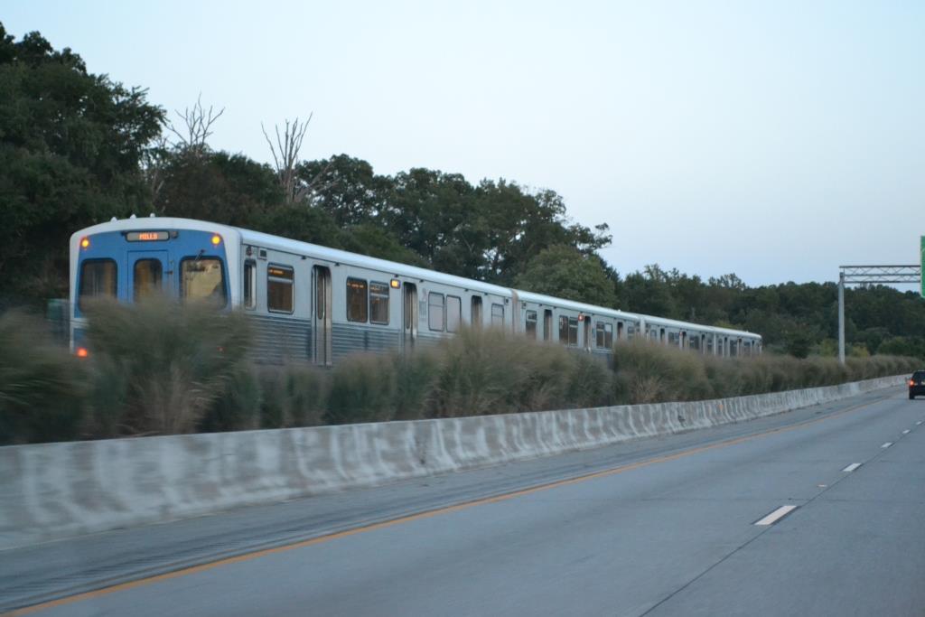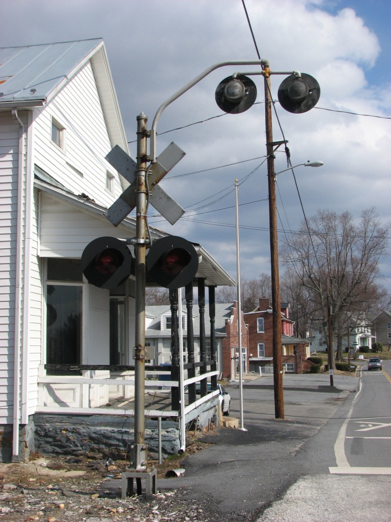 And the grade crossing in front of the fire hall....On the way home to Towson, you come down I-795. The Baltimore Metro (Subway) runs down the middle of the interstate, and if you can catch them, they are running around 75MPH! Didn't have enough time to get ahead of it enough to catch the front end getting ready to pass under the interchange ramp :-(