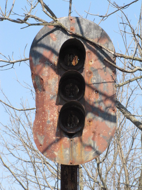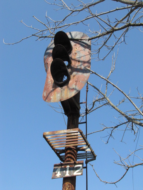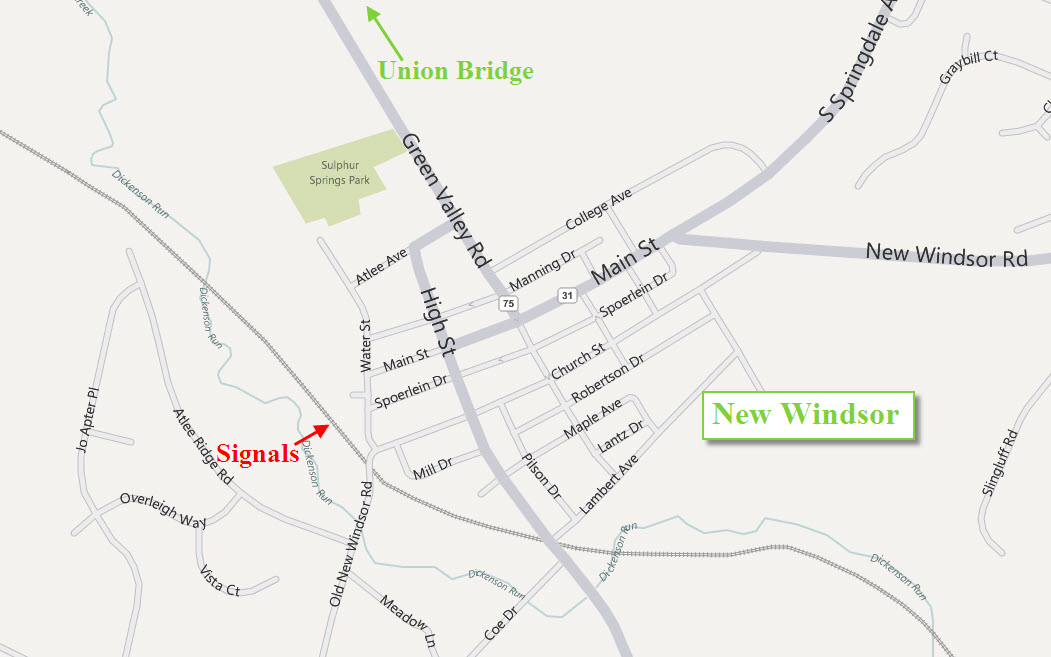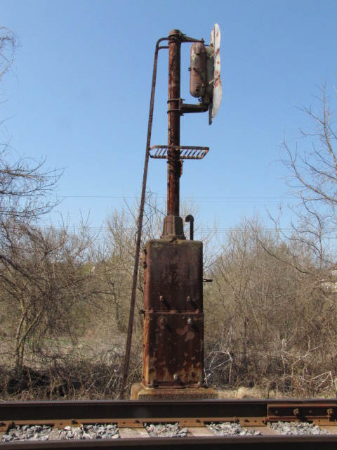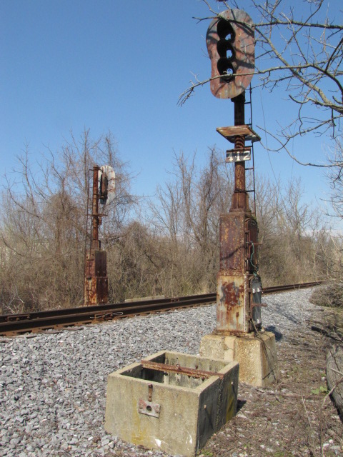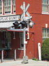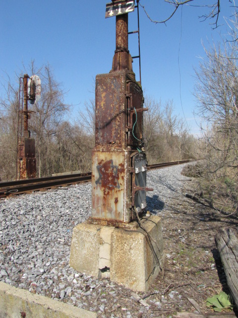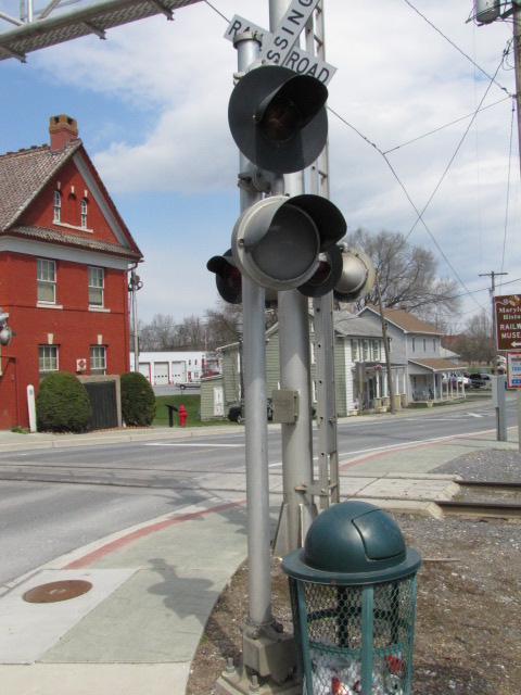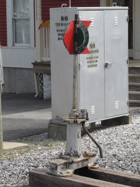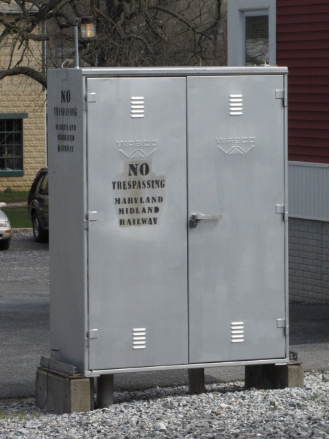 A pair of old Western Maryland signals graces the edge of town. They can just be seen if you venture off the main thoroughfare between Westminster and Union Bridge. In order to keep costs down, the Western Maryland used signals mounted on the equipment cabinets, which can also be seen below at the museum with the semaphore on display. These signals are in pretty good shape considering they haven't seen a Western Maryland train for 35 years!