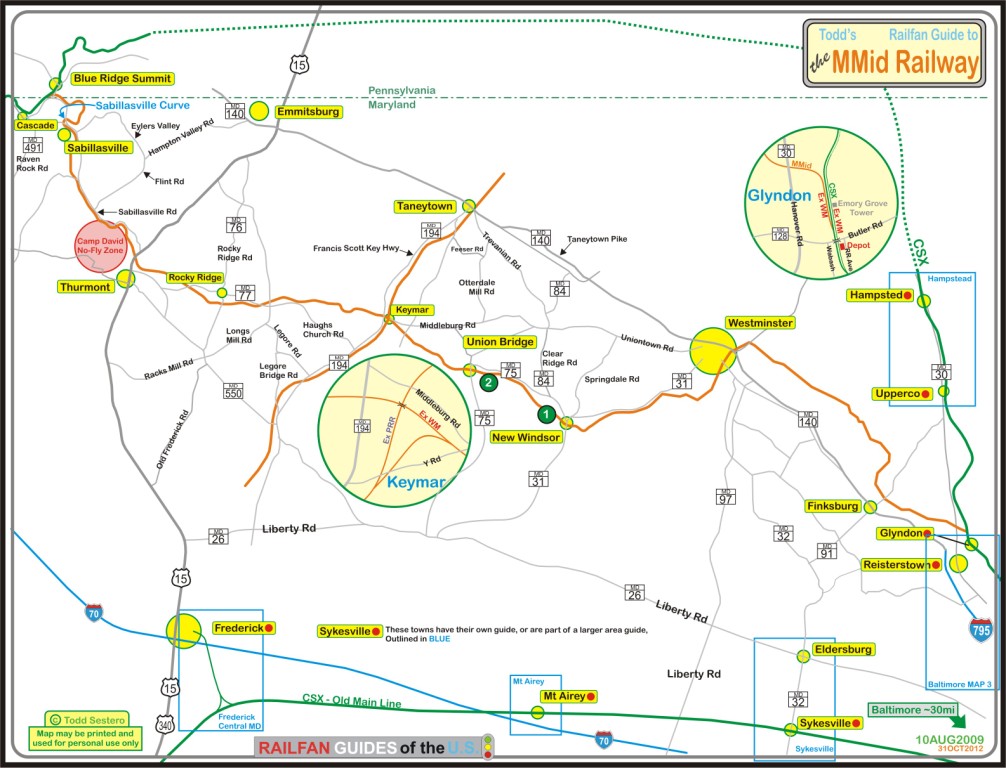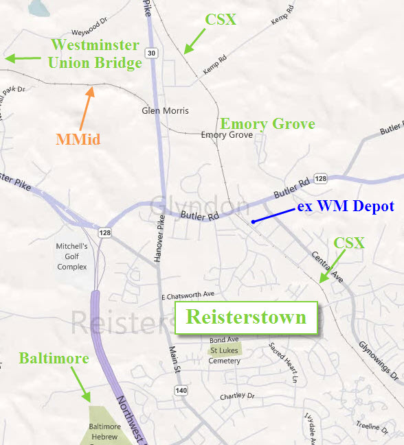 The Maryland Midland RR operates over a portion of the former Western Maryland Rwy between Emory Grove (Glyndon, or Reisterstown) MD and Blue Ridge Summit PA. There is a crossover and wye in Keymar MD. The MMid connects with CSX at both ends.