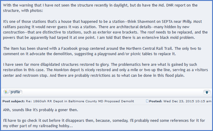 the Penn Central did not rebuild the line, so north of Cockeysville, service