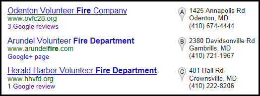 Locations of volunteer fire companies around Odenton.
